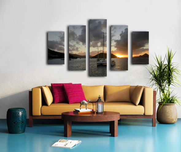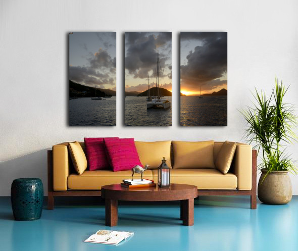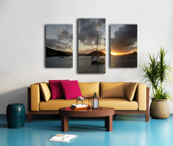 Caribbean sunset with catamarans and sailboats  Canvas print