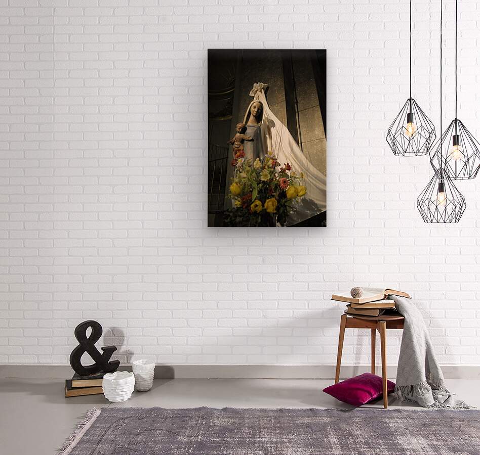 Wood carving of the virgin with bouquet of flowers Eglise Saint Pothin Kevin Oke Puzzle printing