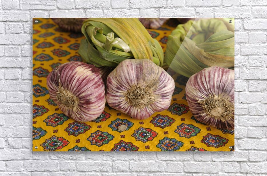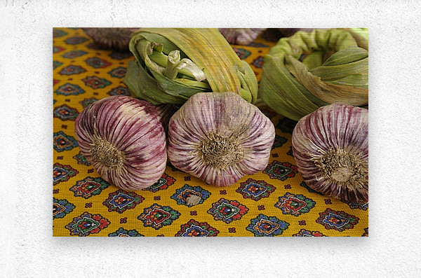 Get this artwork "Garlic at the Friday market in Lourmarin" in a framed print.