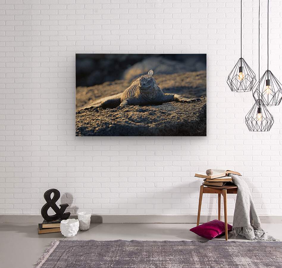 Marine Iguana at sunset Amblyrhynchus cristatus Punta Espinosa Fernandina Island Galapagos Islands Ecuador Picture Frame Printing