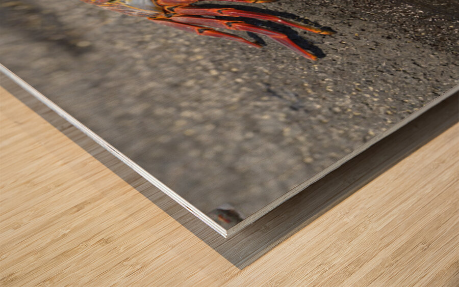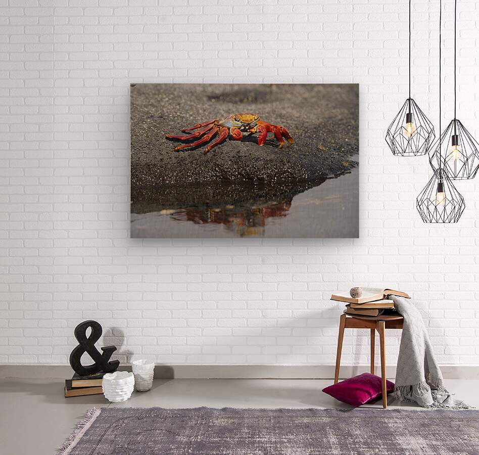 Sally Lightfoot crab Grapsus grapsus with reflection Punta Espinosa Fernandina Island Galapagos Islands Ecuador