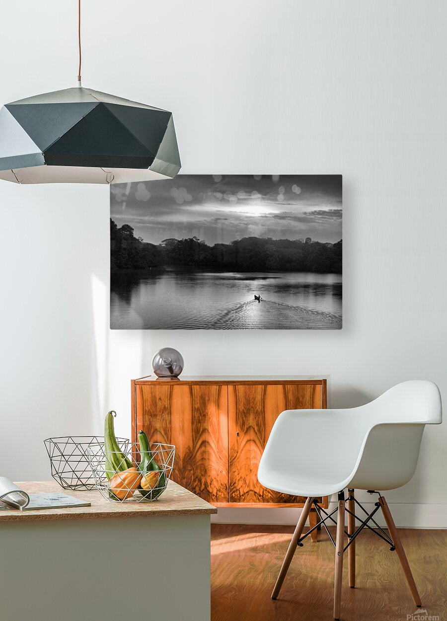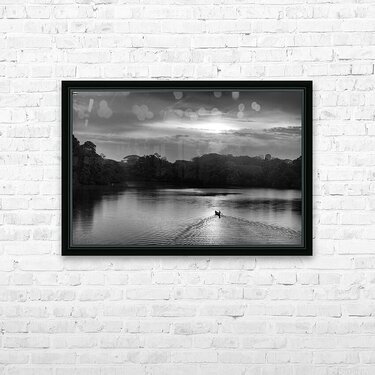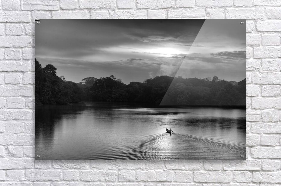 ABOUT THIS ARTWORK: CANOEING ON LAKE GARZACOCHA BLACK AND WHITE ECUADOR