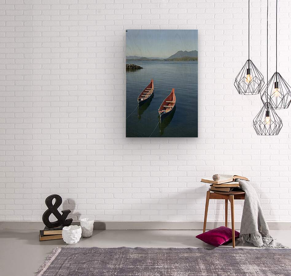 Get this artwork "Two native canoes anchored in Tofino Harbour" in a framed print.