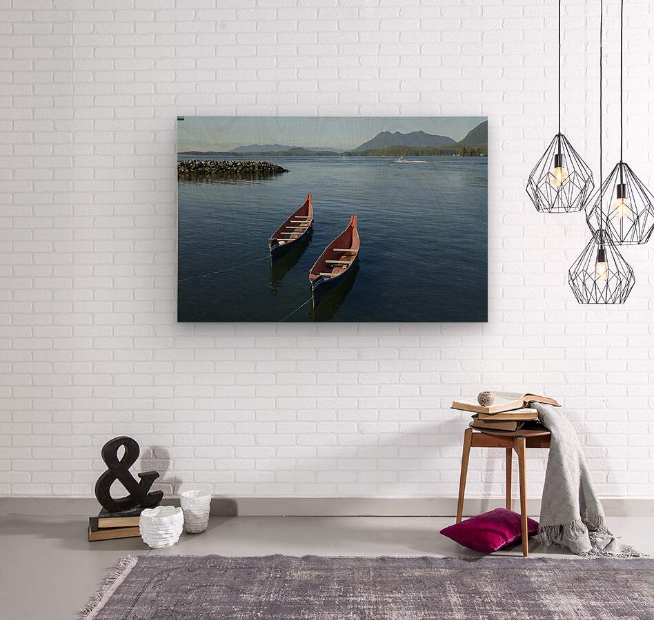 Two native canoes anchored in Tofino Harbour Canvas print